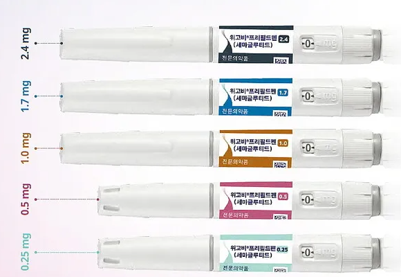 일반적으로 0.25mg → 0.5mg → 1.0mg → 1.7mg → 2.4mg로 4주 간격으로 서서히 올립니다(개인 맞춤 조정 가능). 복부·허벅지·상완에 주 1회, 같은 요일·비슷한 시간에 투여하세요. 메스꺼움 등 부작용이 심하면 증량을 지연하거나 이전 단계로 돌아갈 수 있습니다.